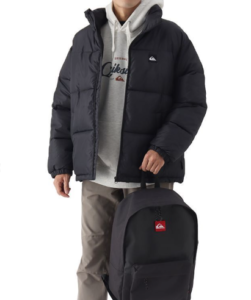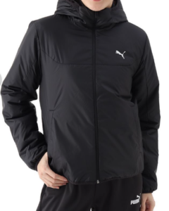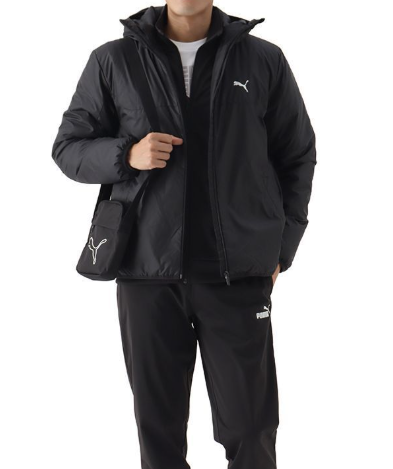 - pumaのTシャツ、スウェット上下、ダウンジャケット、ニット帽にバックパック。しめて一万と千円