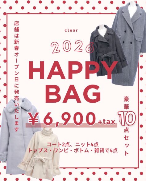 2026年のクリアー(clear)の福袋はネット予約は、12月1日(月)18:00~公式サイトにて予約開始。