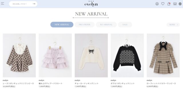 エブリンはふわっとした女の子らしいファッションができるのでデートとかにコーディネートを加えていったりと人気のブランドですね。