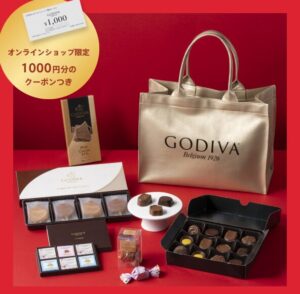 ゴディバ(Godiva)公式オンラインショップでは、5,000円でクーポン付きの福袋がオリジナル販売されているよ。