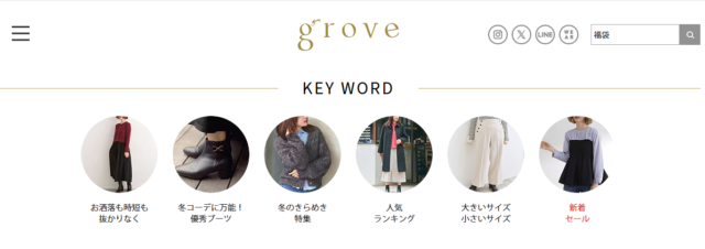 2026年grove(グローブ)福袋の中身・ネタバレ画像についてはわかり次第追記。