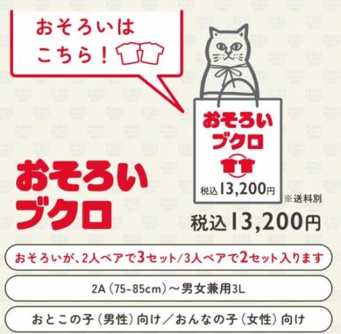 | おそろいブクロ | ¥13,200 | 約¥34,100相当 | 親子でお揃いアイテムが入る | お揃いアイテムが特徴 |